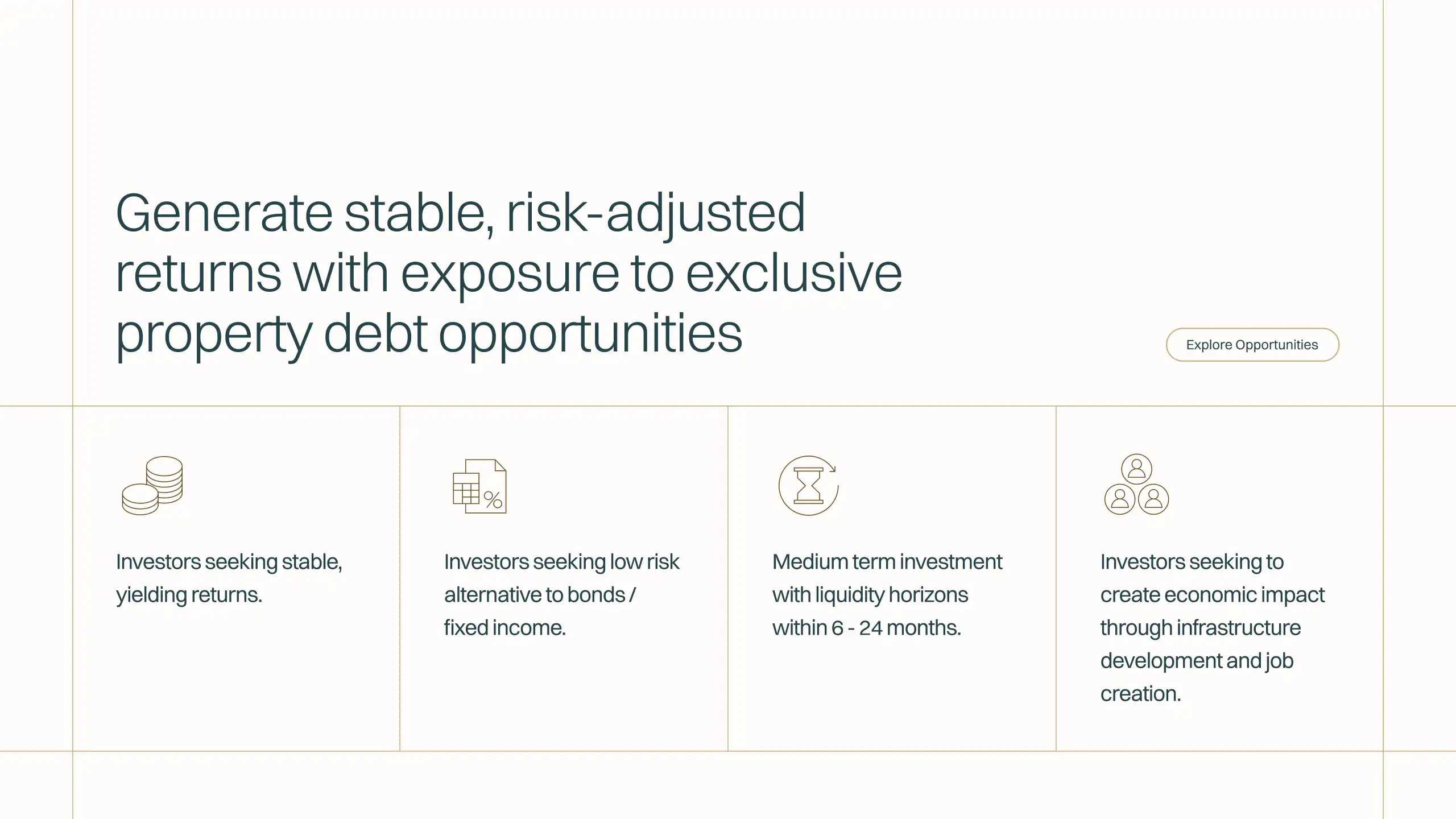 Without an existing site, there was no foundation to build on. The team needed a complete digital presence designed to communicate their credibility, showcase their transactions, and speak clearly to two distinct audiences: investors seeking returns and borrowers seeking funding.